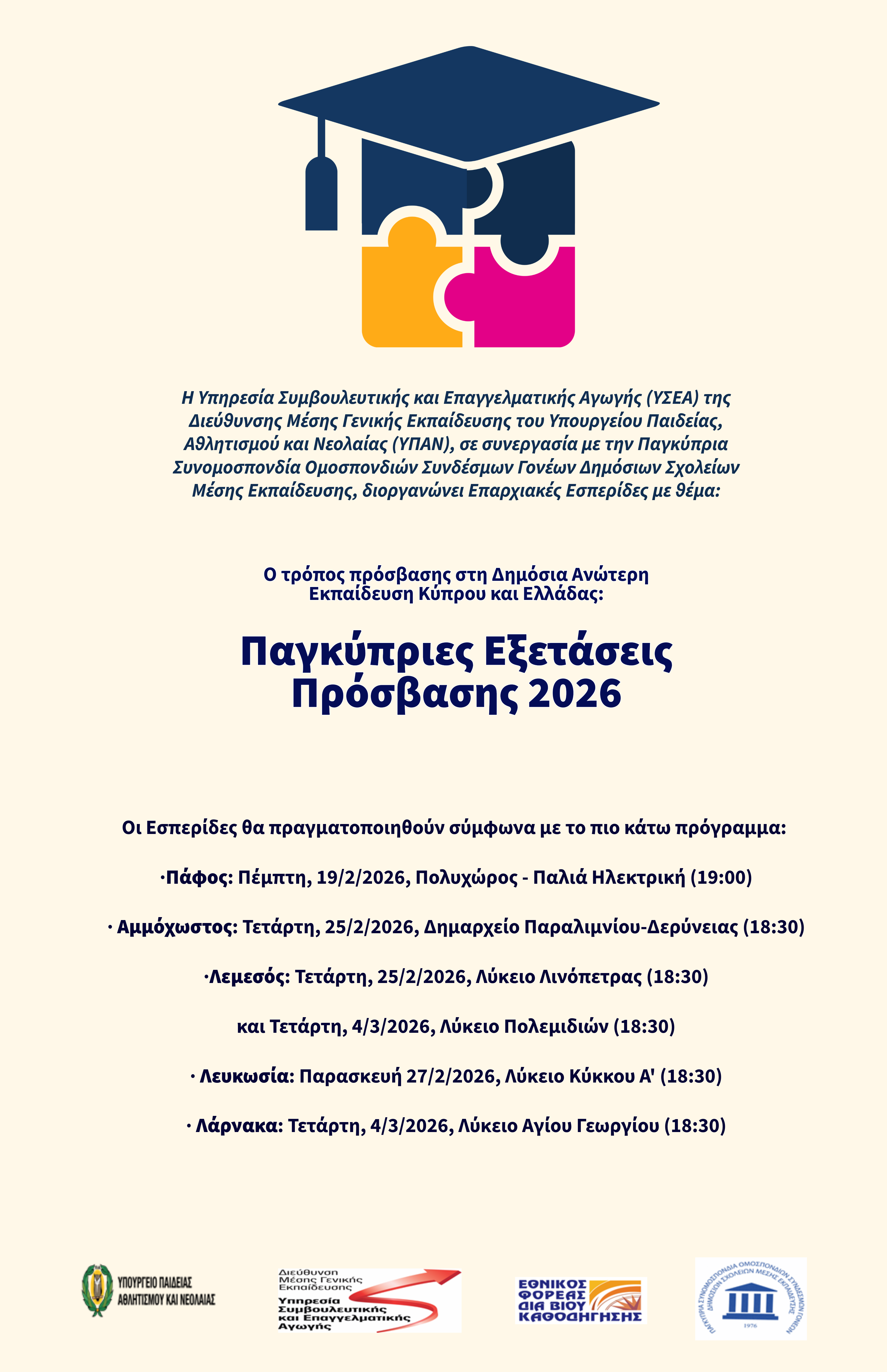 Μαθητικές Εσπερίδες με θέμα: «Πρόσβαση στην Τριτοβάθμια Εκπαίδευση Κύπρου και Ελλάδας – Παγκύπριες Εξετάσεις» 20/02/2026